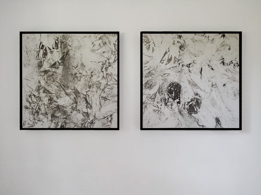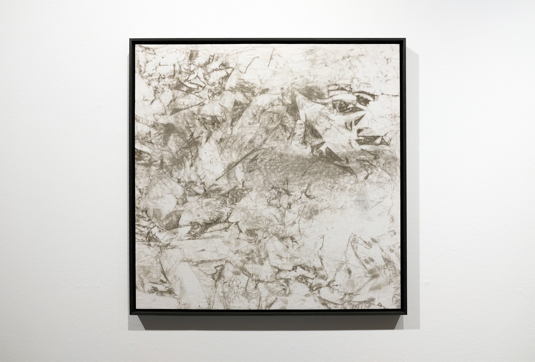 Kleinstpartikel eines Stadthauses auf Canvas, gerahmt, 83 x 83 cm; Video 6 min, 2025 | Foto: Margit Greinöcker.