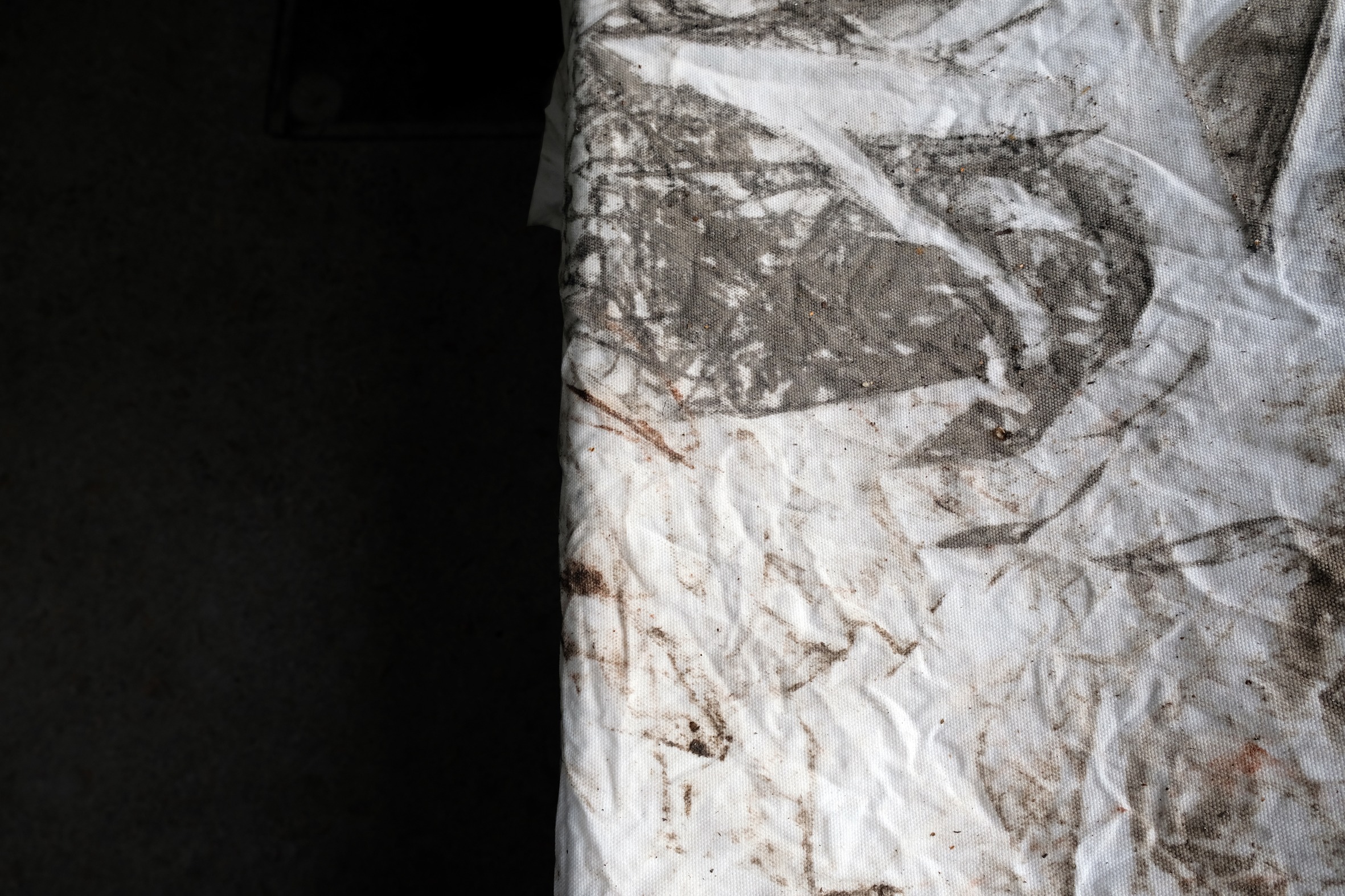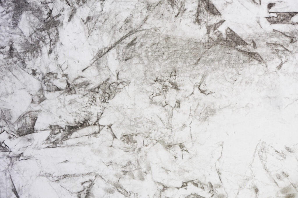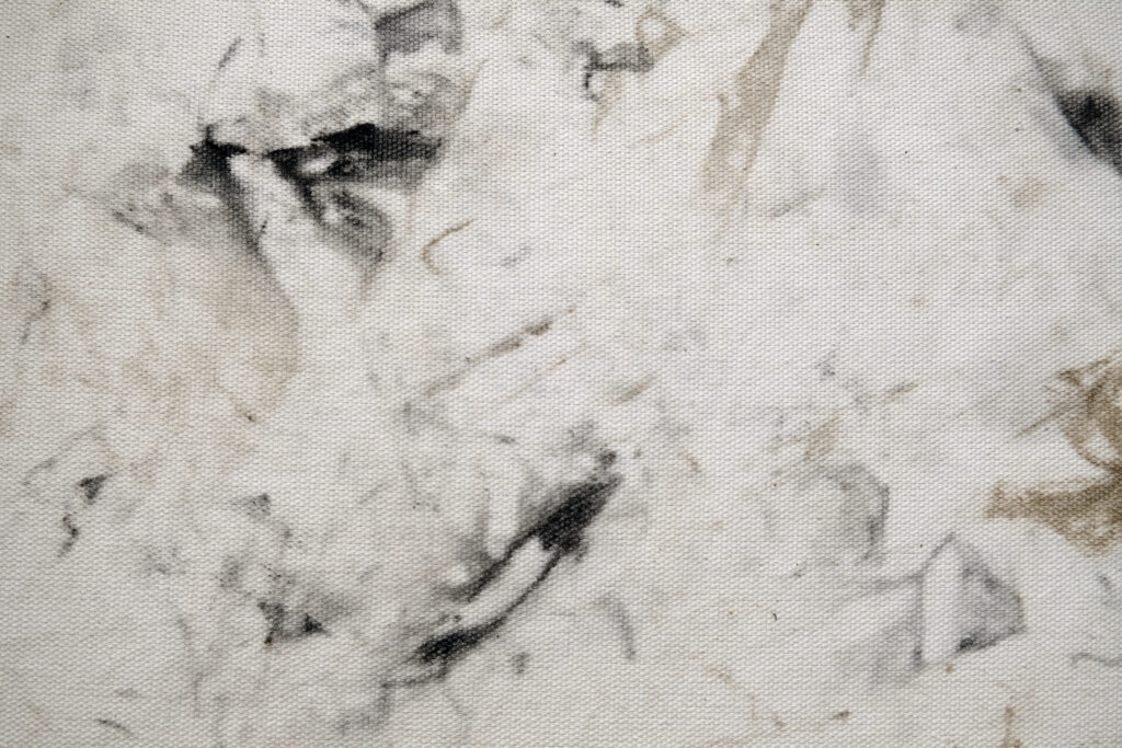 The work sheds light on the intensive process of building cleaning. What is hidden becomes visible; tiny particles tell of earlier use – and little by little unexpected peculiarities and details reveal themselves. Questions about the space arise: Who used it? Who cleaned it? Or: What will become of it? The white cloths absorb the dirt of the building and gradually take on color. An abstract image emerges. In the process, a camera attached to the body documents the working hands.